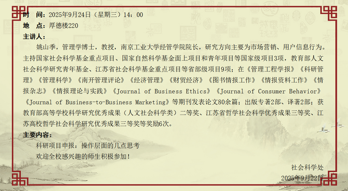10月20日:管理大讲堂二:国家两金项目高质量申请书撰写的思考和体会