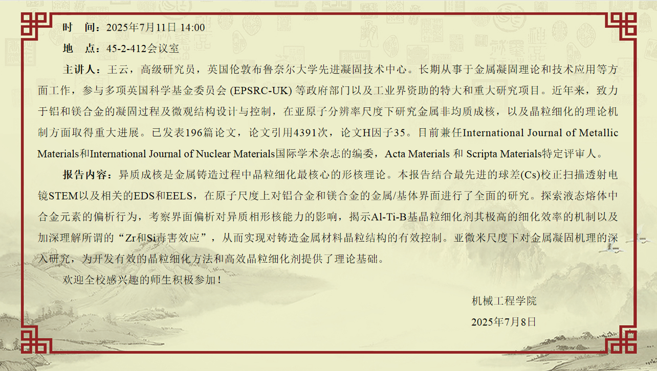 7月11日:金属凝固研究现状与合金的晶粒细化:机理与应用