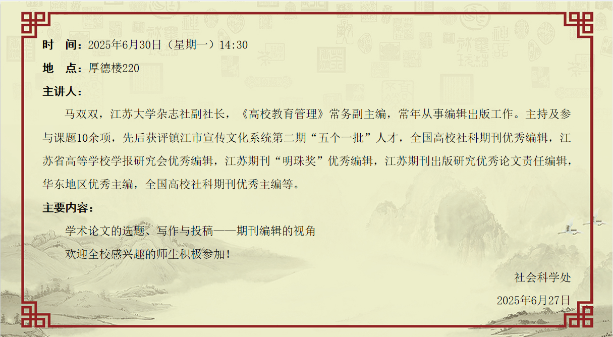 6月30日: 学术论文的选题、写作与投稿——期刊编辑的视角